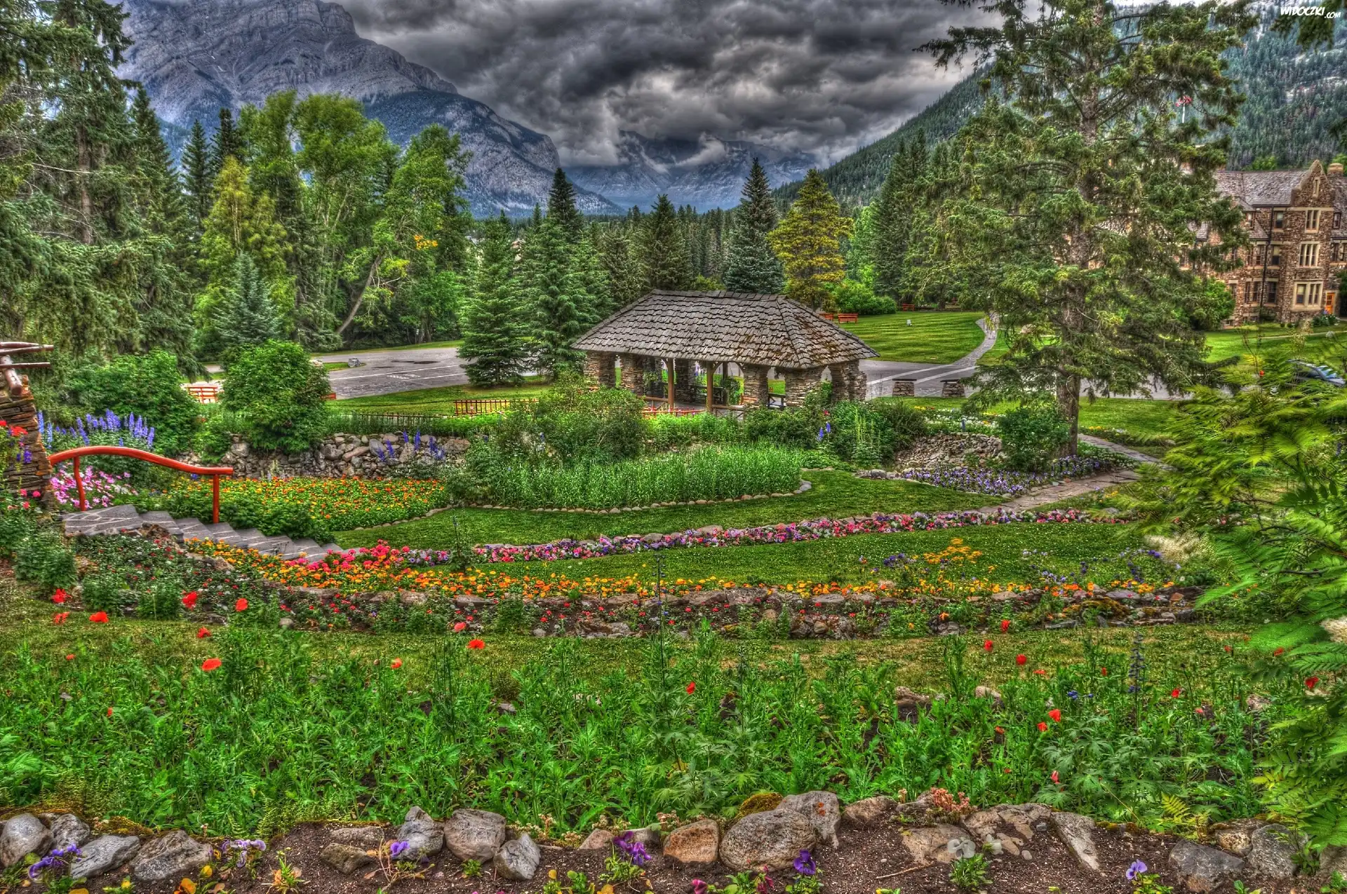 Zdjęcia, Ogród, Kwiaty, Altanka