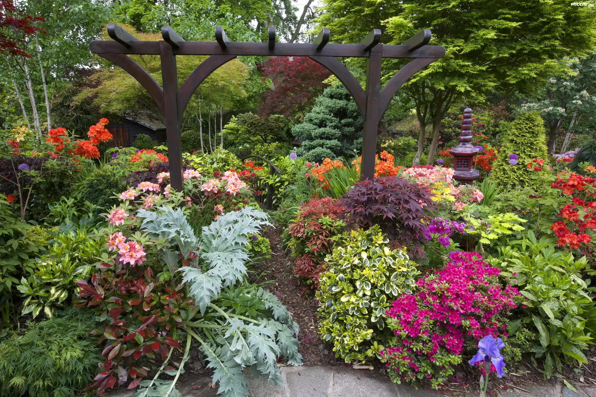 Zdjęcia, Ogród, Kwiaty, Drzewa