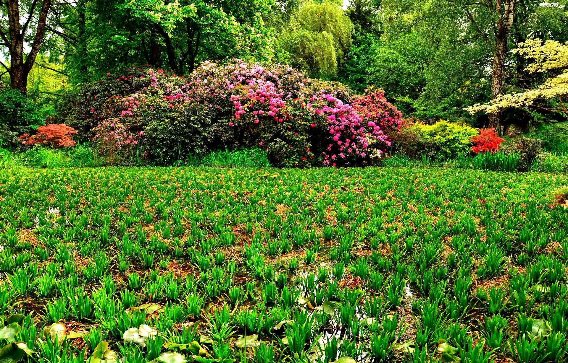 Zdjęcia, Ogród, Kwiaty, Drzewa