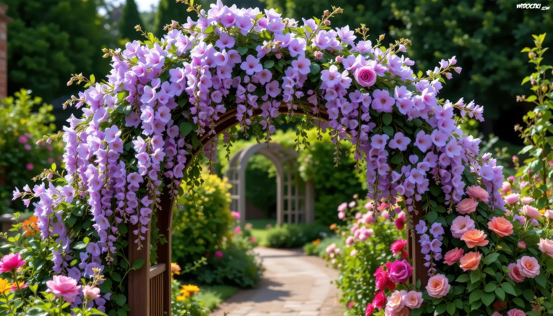 Zdjęcia, Ogród, Pergola, Fioletowe, Kwiaty