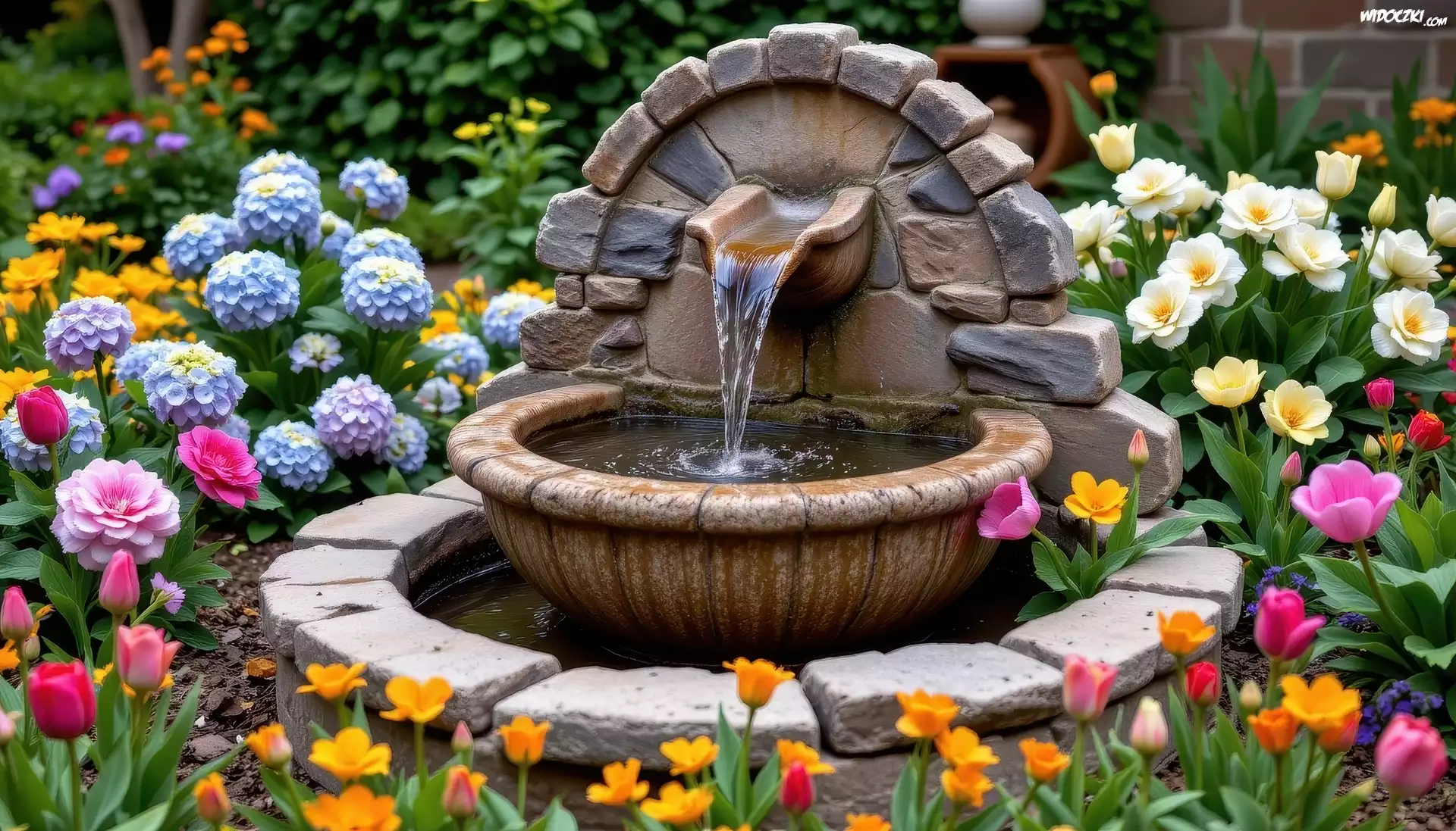 Kwiaty, Kamienie, Ogród