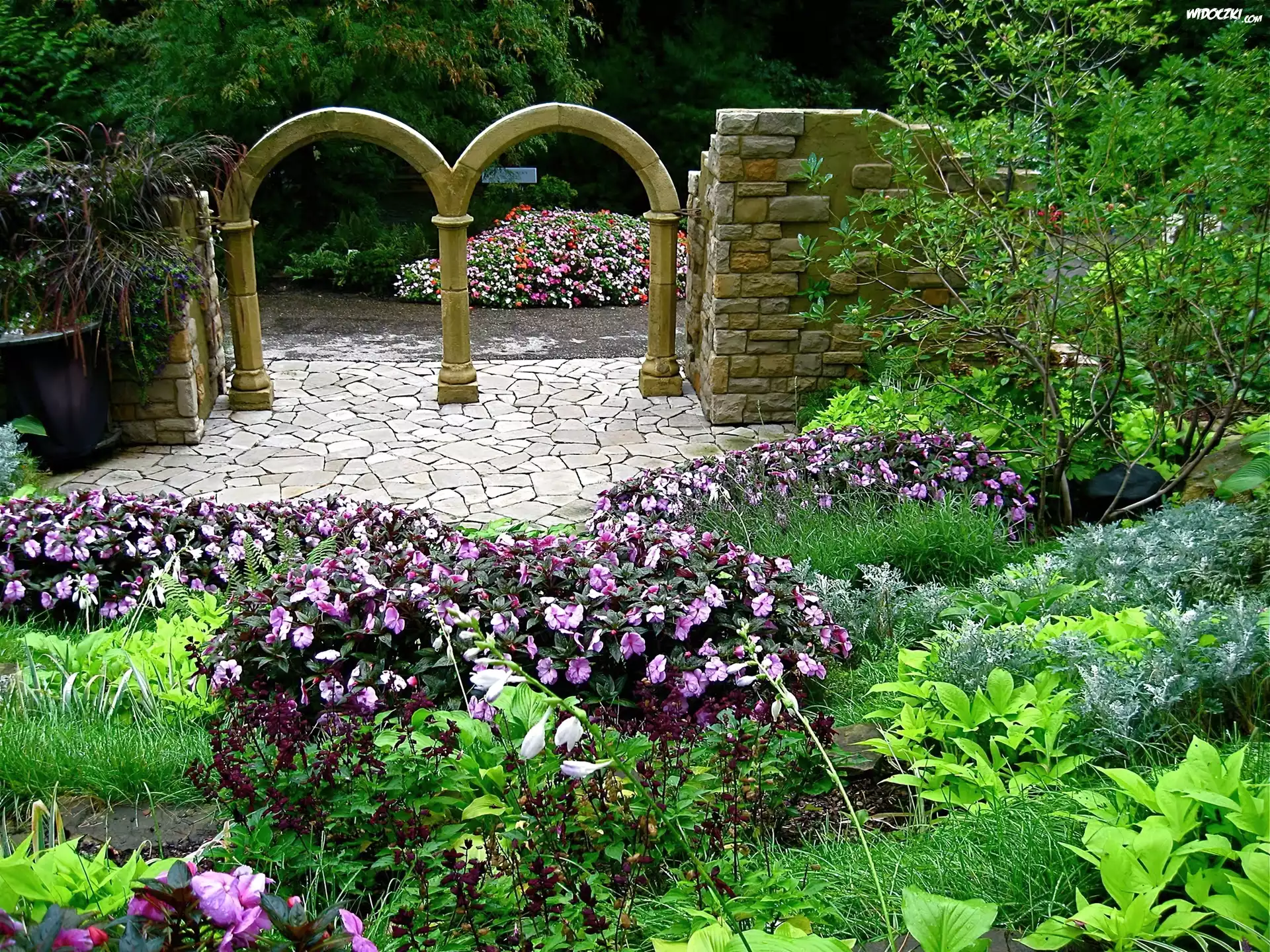 Zdjęcia, Ogród, Kwiaty, Kolumny