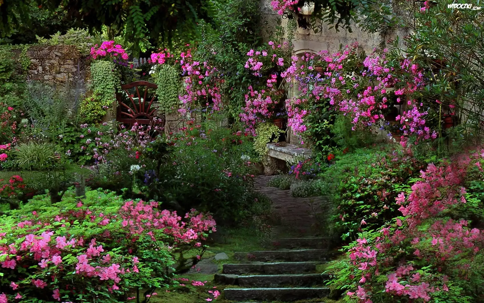 Zdjęcia, Ogród, Kwiaty, Schody