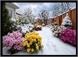 Zdjęcia, Ogród, Zima, Krzewy, Kwiaty, Dom, Ogrodzenie