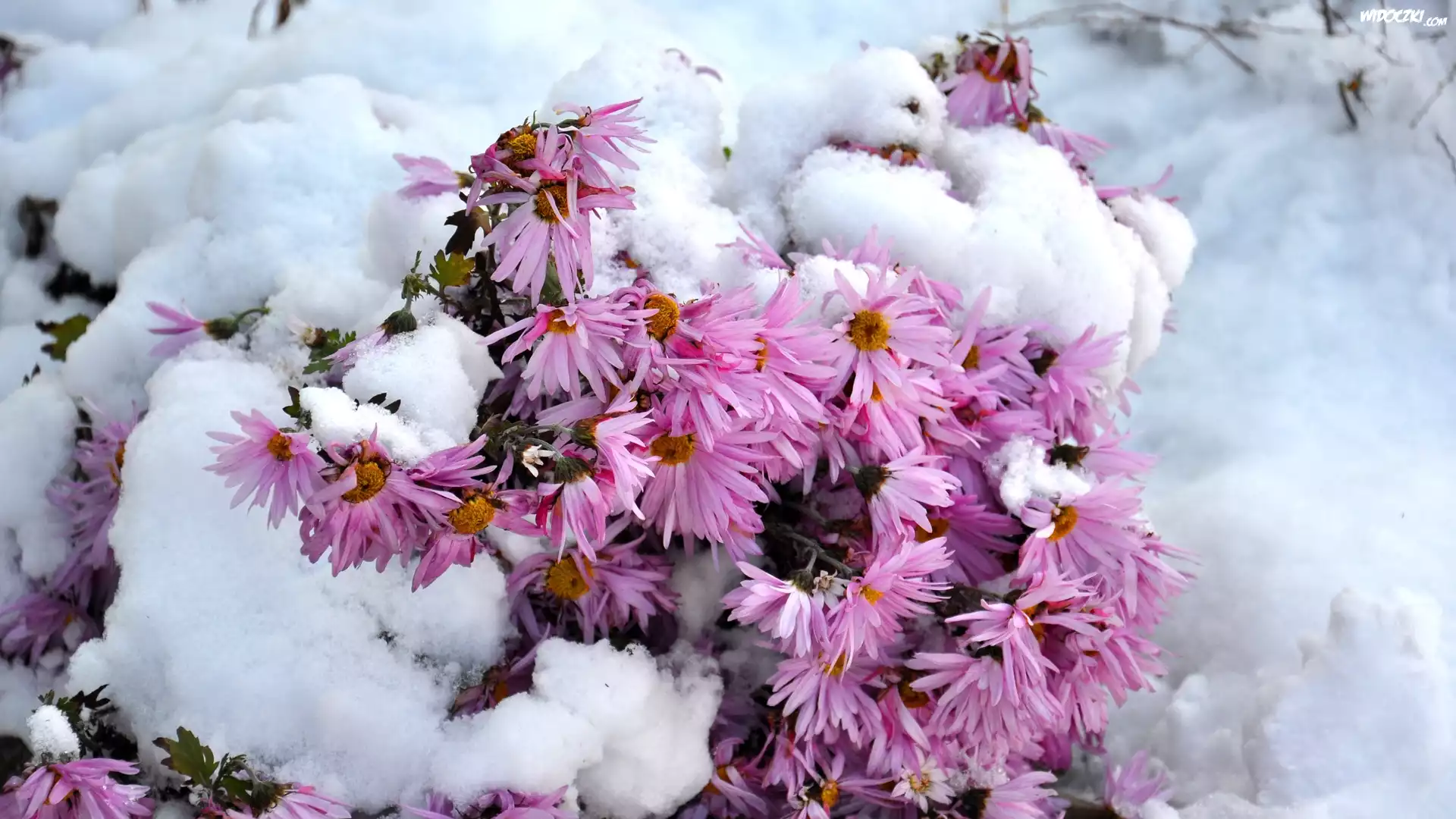 Zdjęcia, Ośnieżone, Kwiaty, Zima