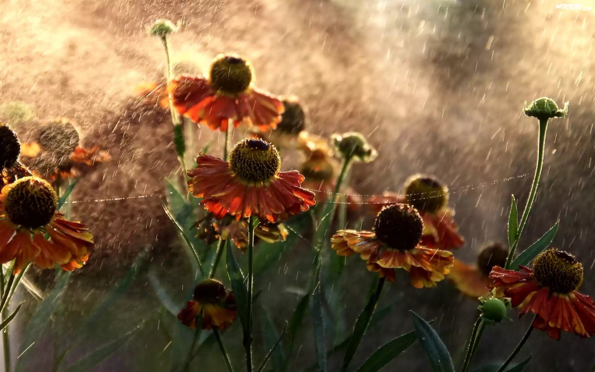 Kwiaty, Dzielżan, Pajęczyna, Deszcz