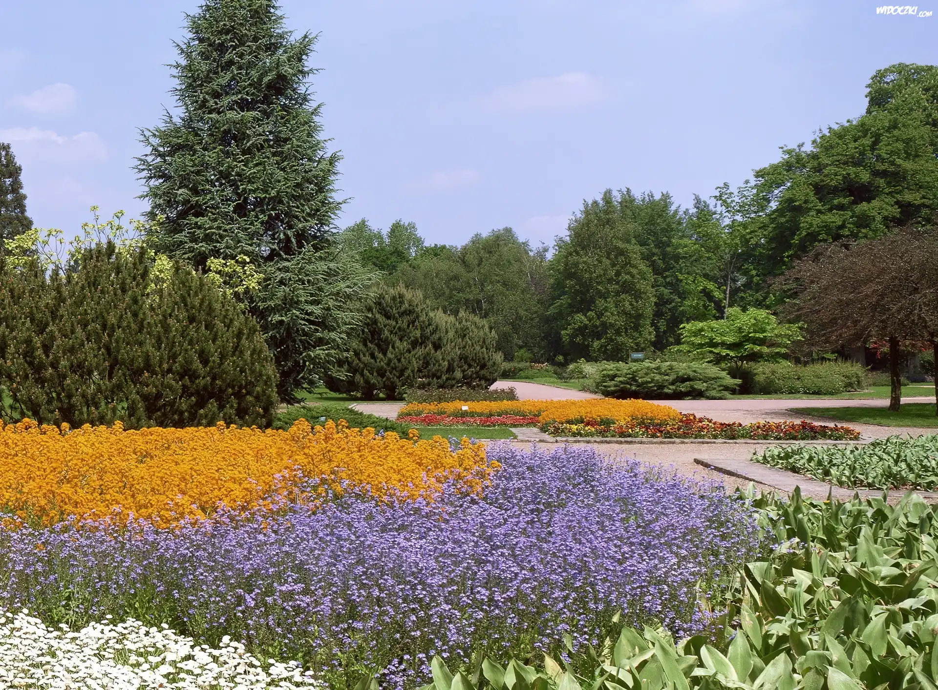Zdjęcia, Park, Kwiaty, Drzewa