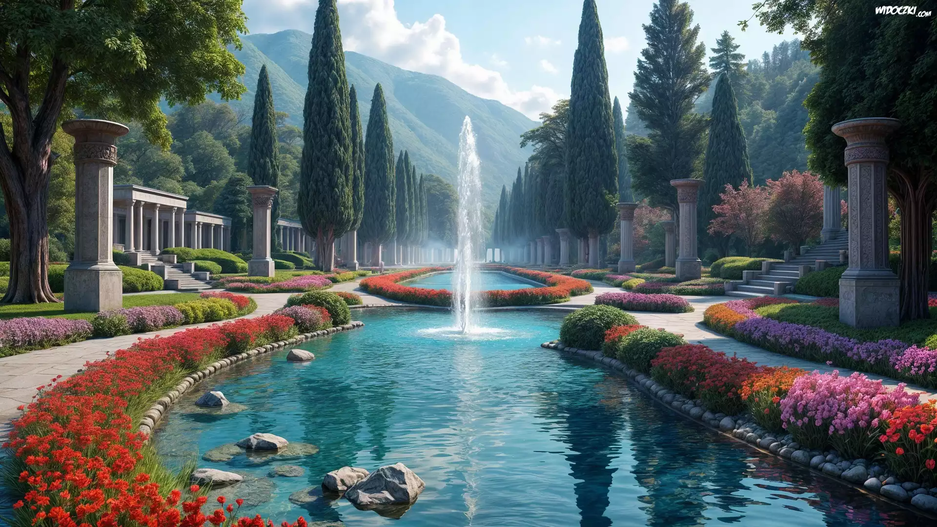 Zdj臋cia, Park, Staw, Fontanna, Kwiaty