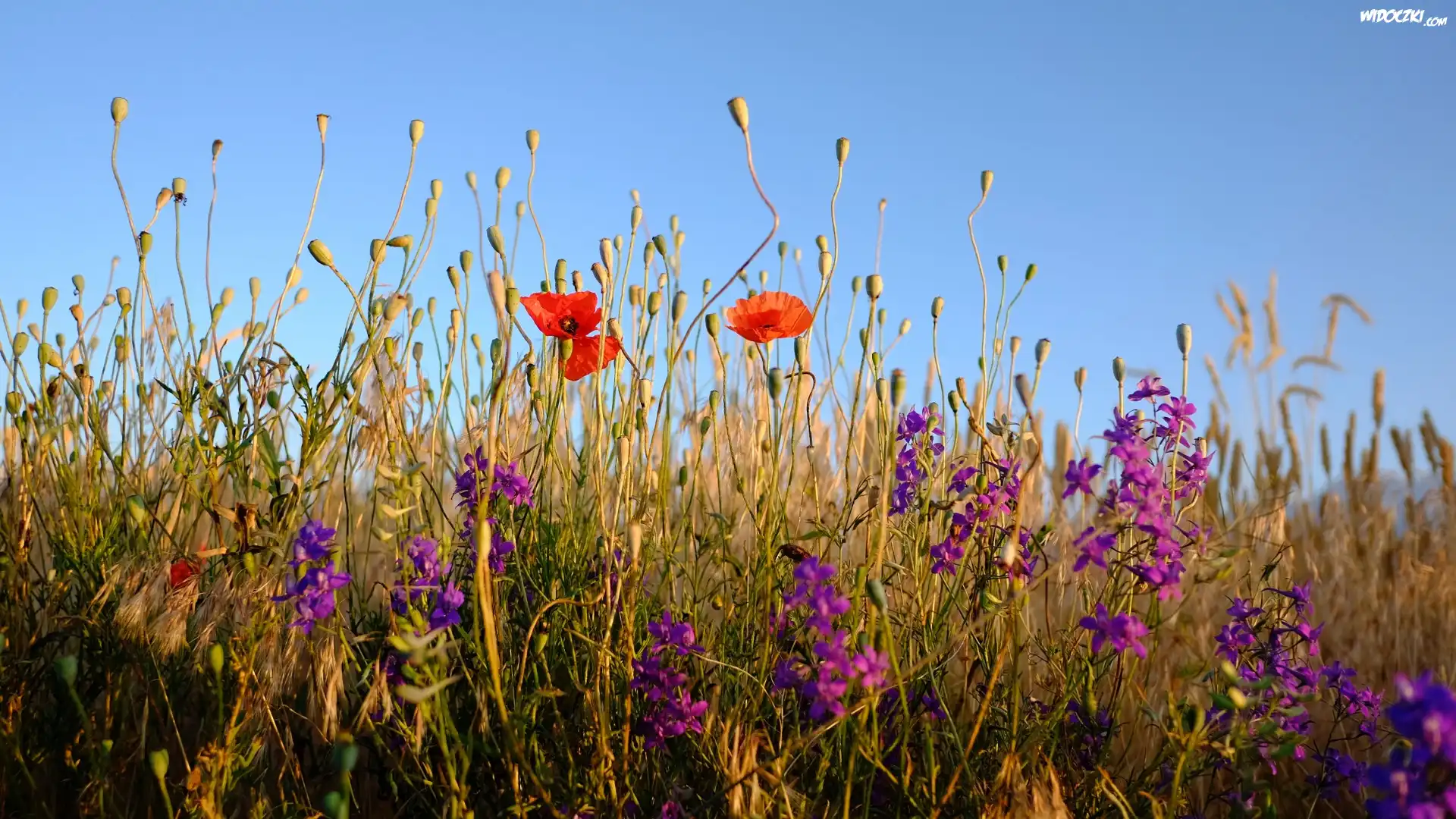 Zdjęcia, Łąka, Polne, Kwiaty, Maki