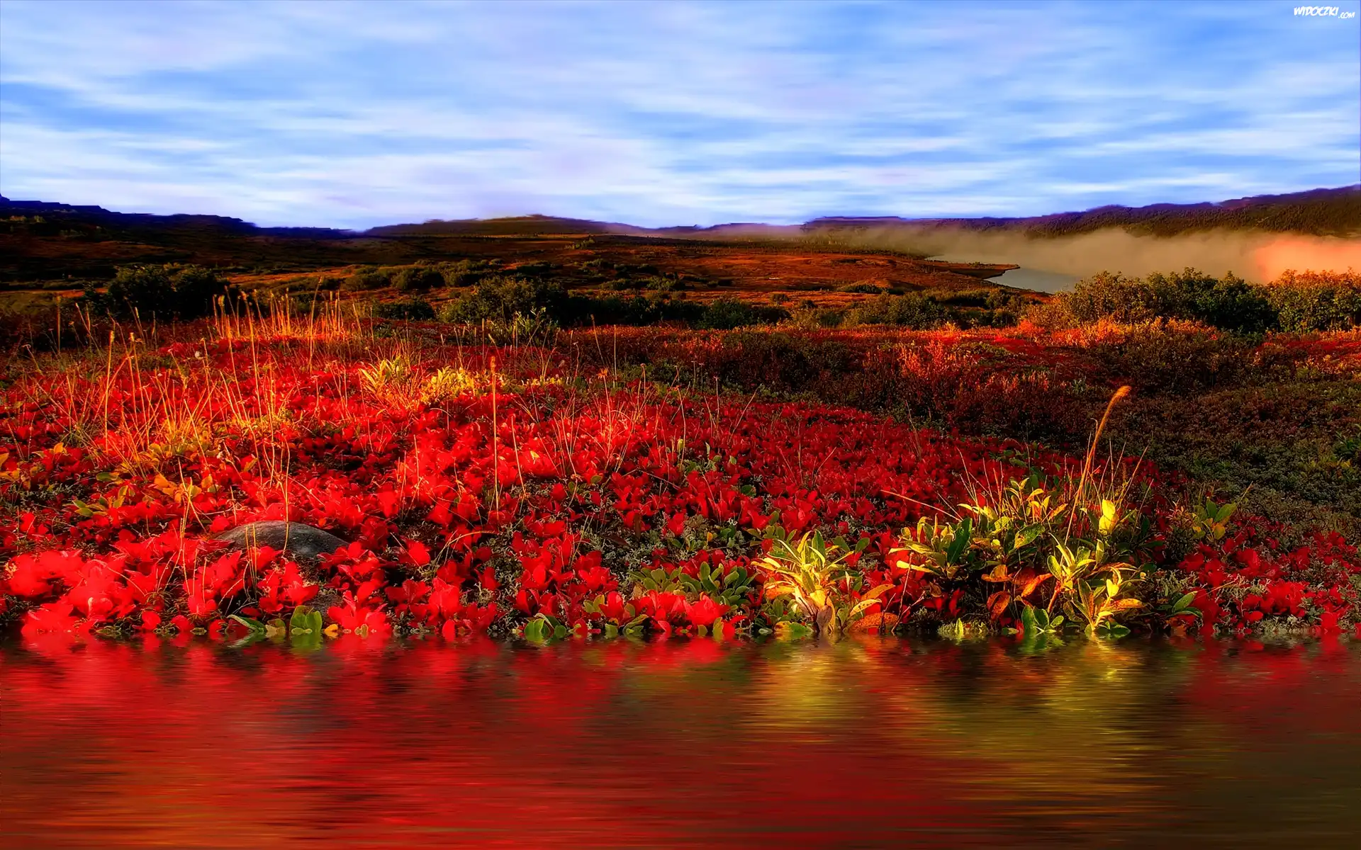 Zdjęcia, Łąka, Polne, Kwiaty, Rzeka
