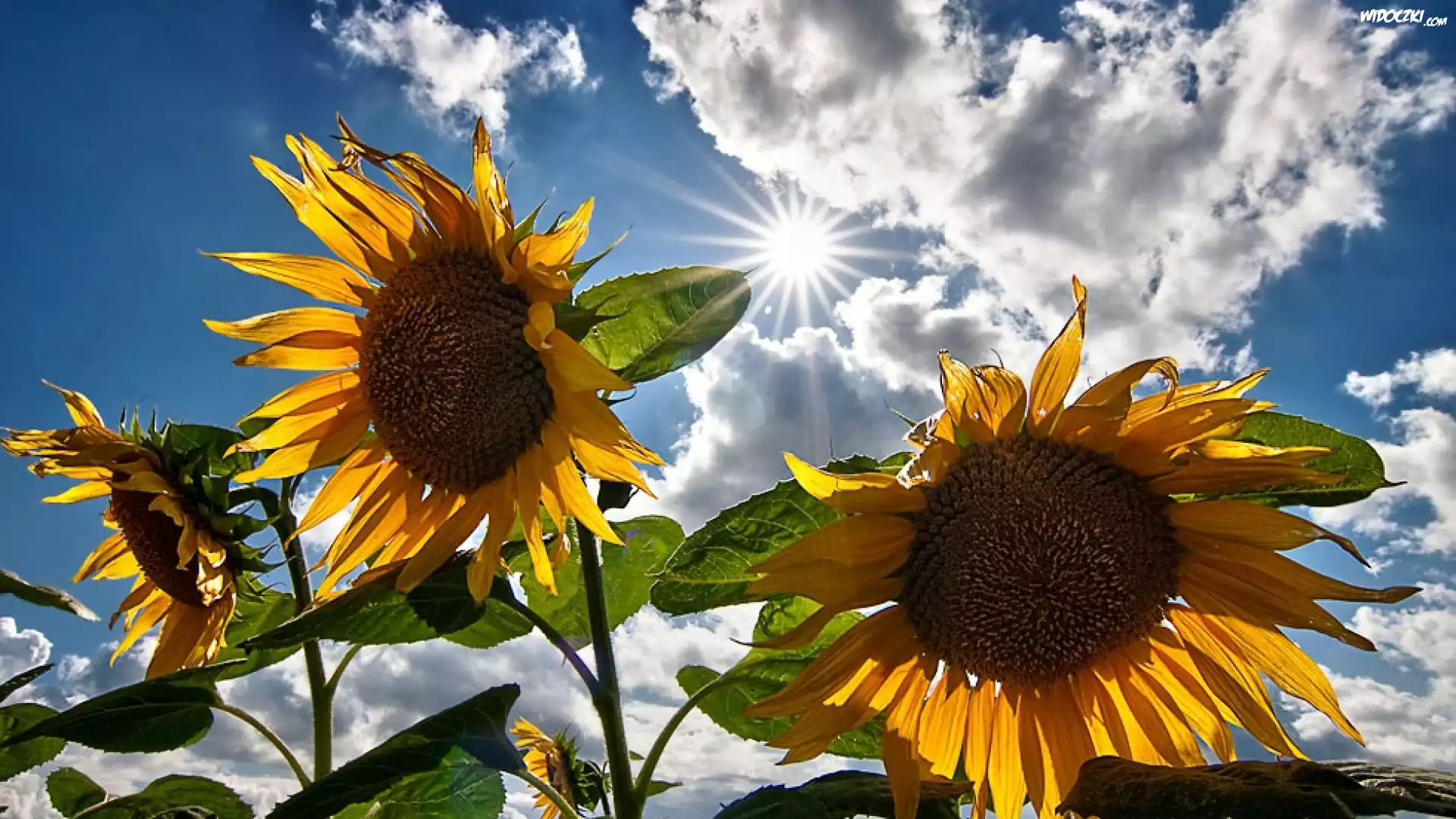 Kwiaty, Słoneczniki, Promienie, Słońca