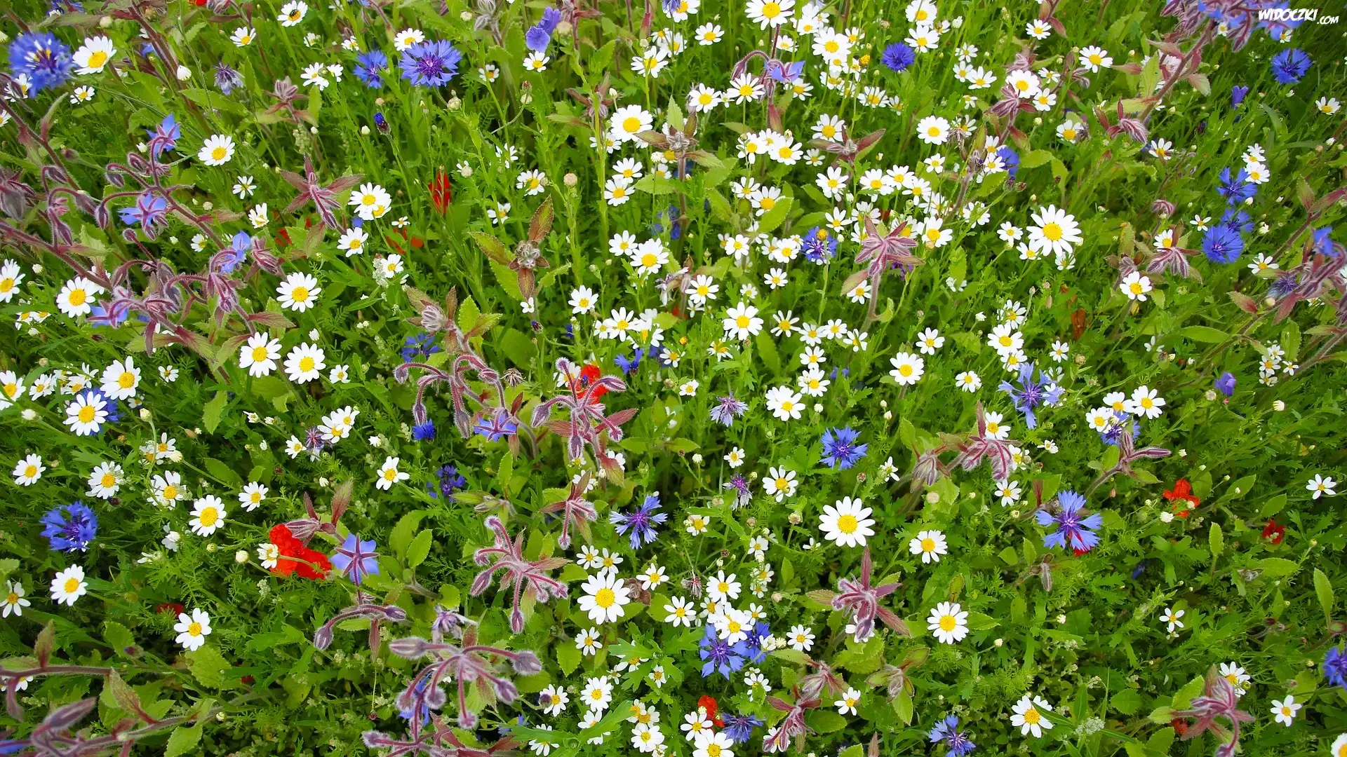 Zdjęcia, Kwiaty, Łąka, Rumianki, Chabry