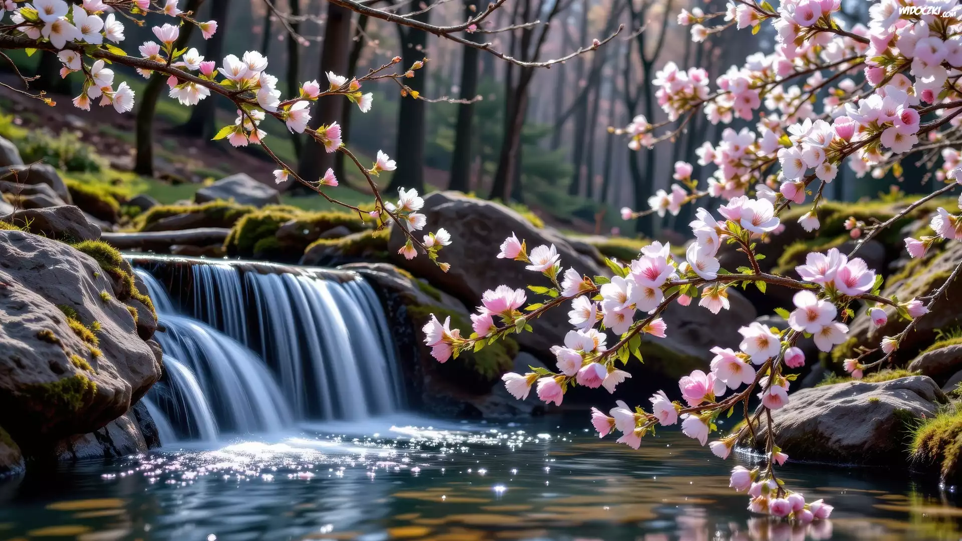 Kwiaty, Gałązki, Strumień