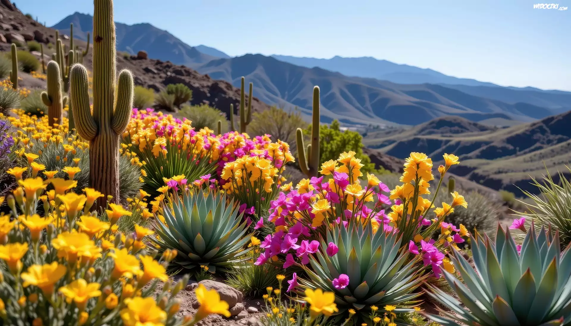 Zdjęcia, Kaktusy, Kwiaty, Wzgórze, Grafika AI
