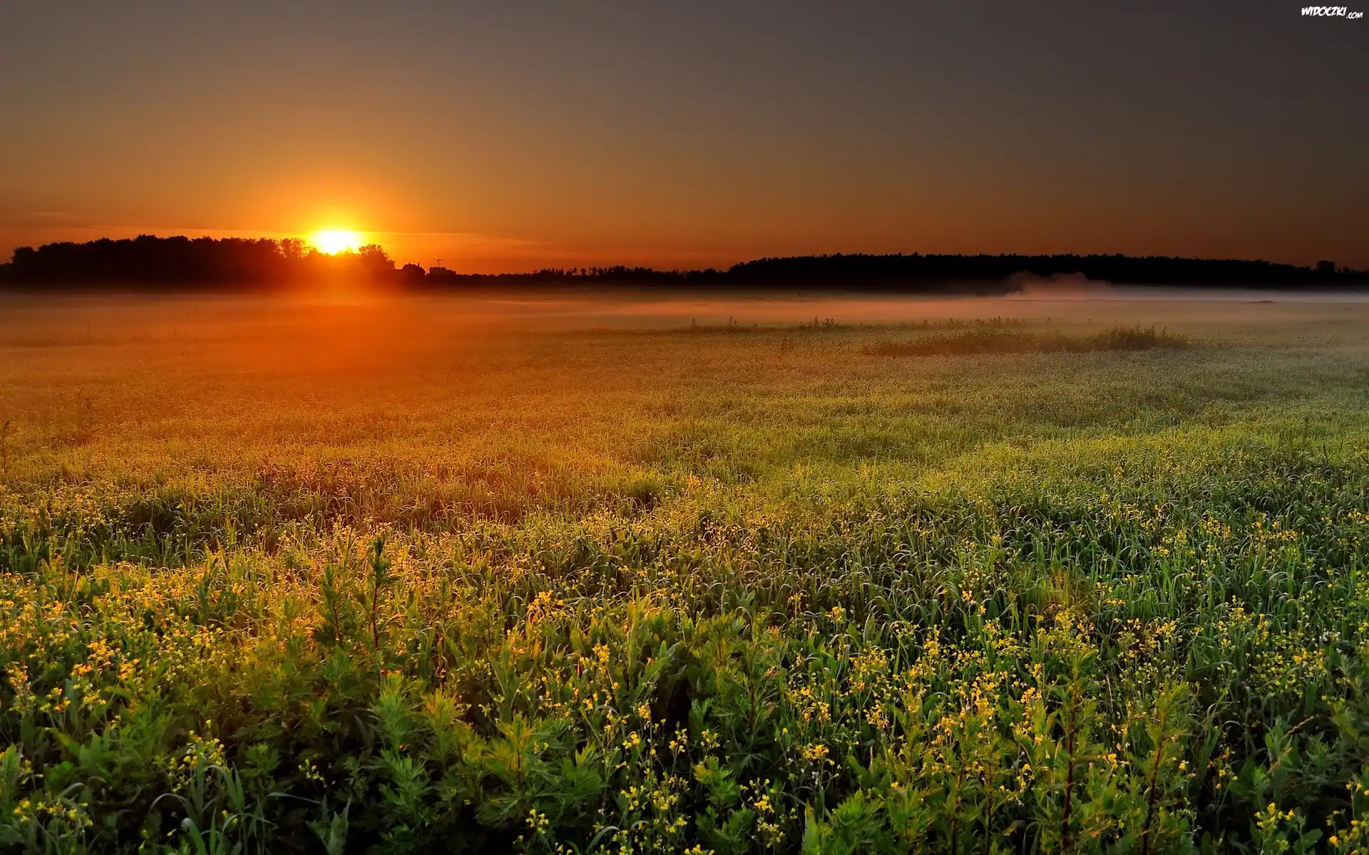 Zdjęcia, Kwiecista, Łąka, Zachodzące, Słońce