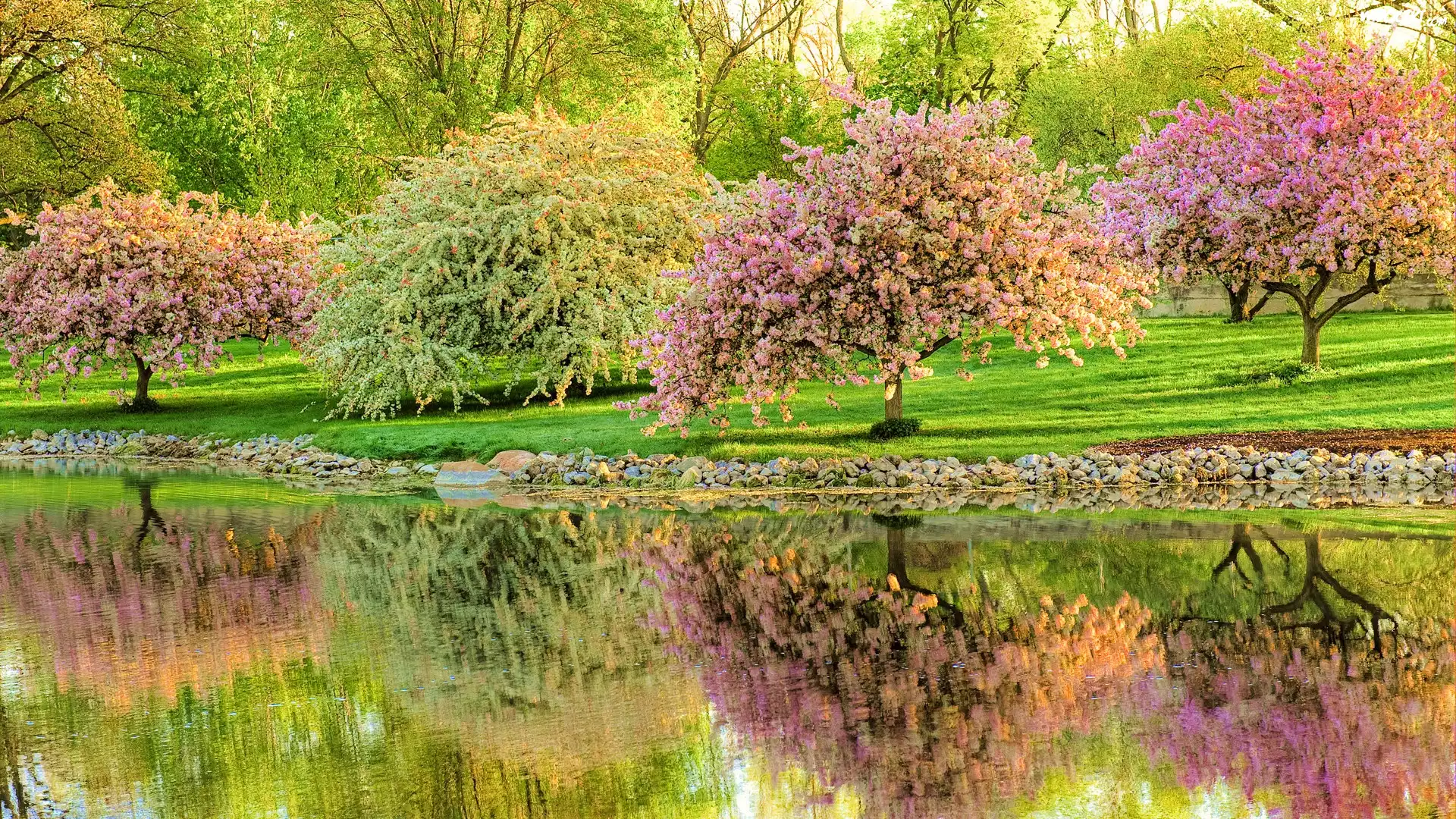 Zdjęcia, Kwitnące, Drzewka, Rzeka, Park