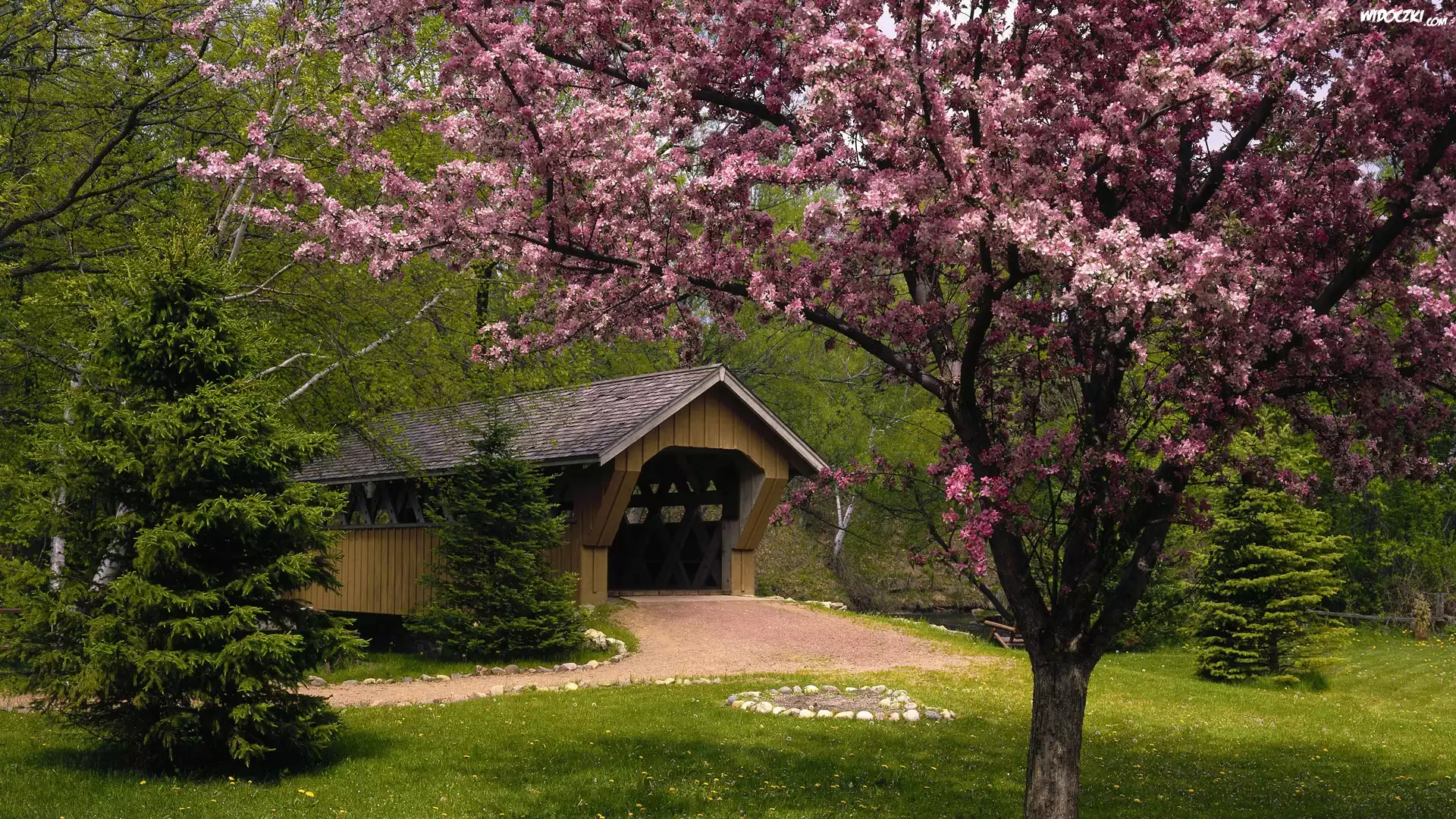 Zdjęcia, Kwitnące, Drzewo, Zadaszony, Most