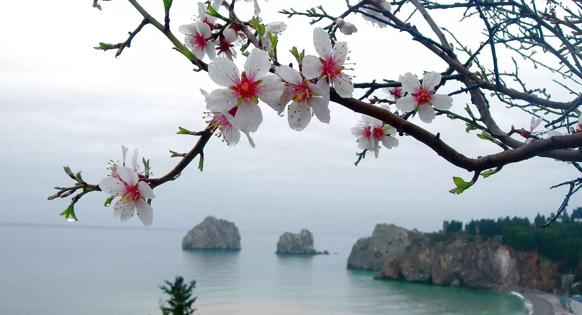 Zdjęcia, Kwitnący, Drzewo, Jezioro, Skały