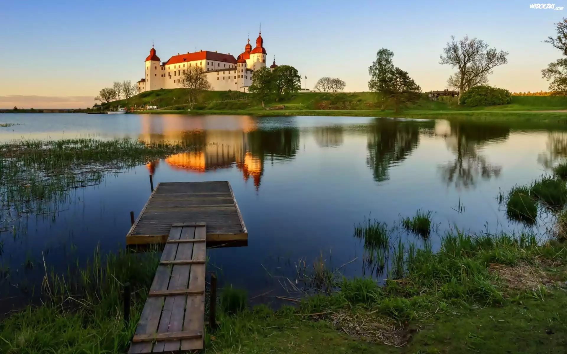Zdjęcia, Zamek Lacko, Läckö Slott, Miejscowość Lidkoping, Szwecja, Jezioro Wener, Pomost