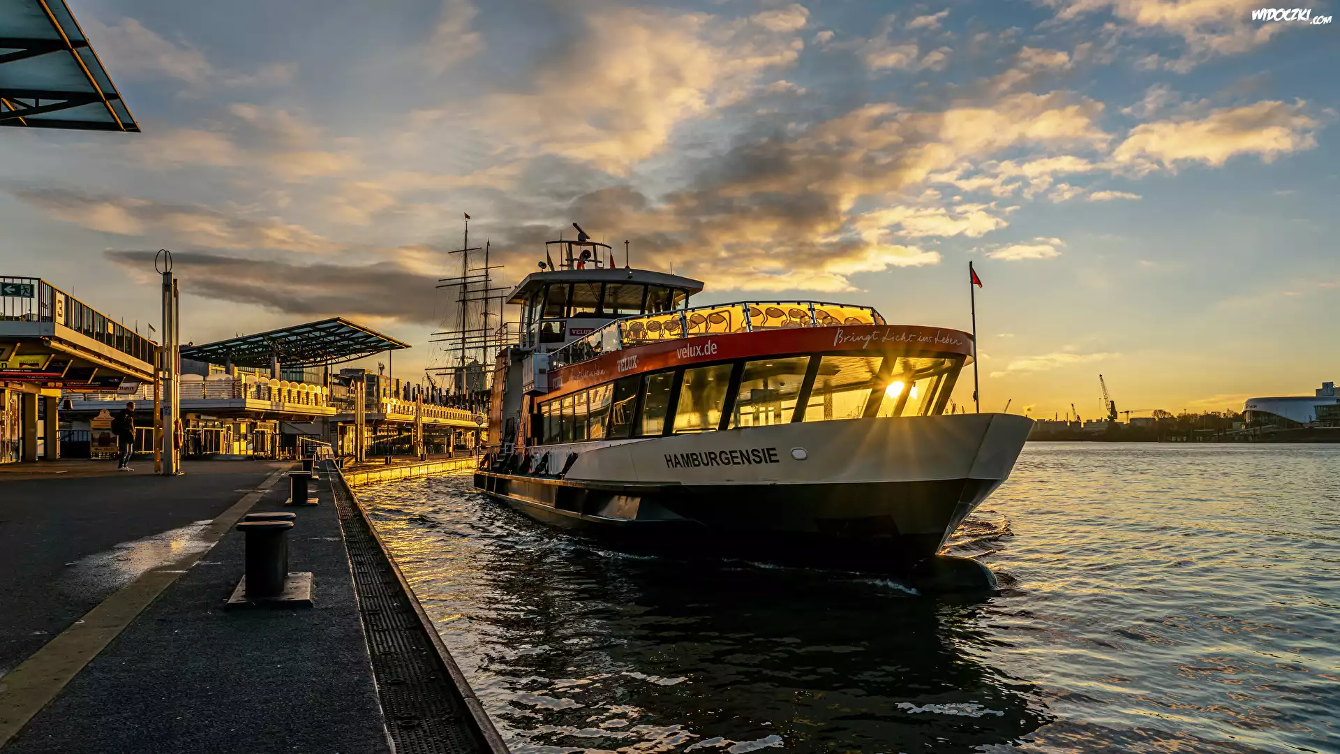 Zdjęcia, Niemcy, Hamburg, Rzeka Łaba, Przystań, Statek