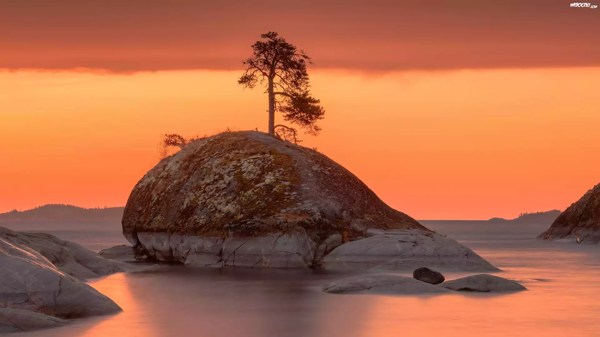 Zdjęcia, Rosja, Karelia, Jezioro, Ładoga, Skała, Drzewo