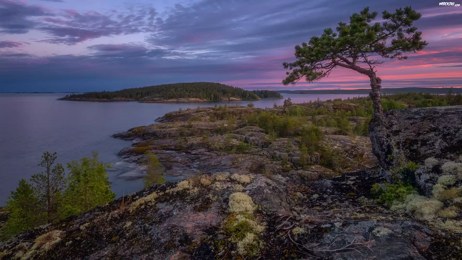 Zdjęcia, Rosja, Karelia, Jezioro, Ładoga, Wysepka, Skały, Drzewo