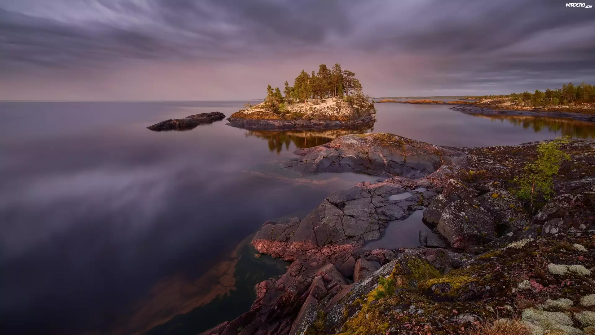 Zdjęcia, Rosja, Karelia, Jezioro, Ładoga, Wysepka, Drzewa, Skały