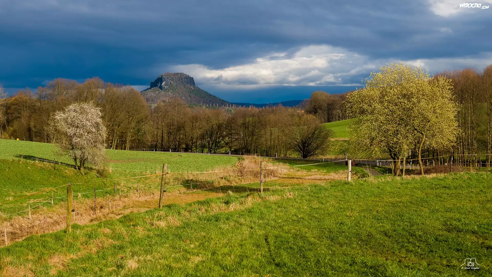 Zdjęcia, Góry, Lilienstein, Drzewa, Łąka, Ogrodzenie, Saksonia, Niemcy