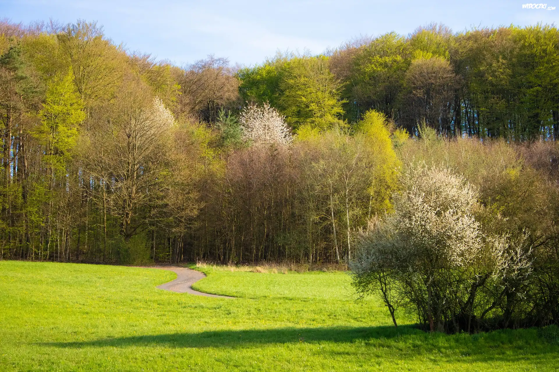 Zdjęcia, Wiosna, Łaka, Las, Ścieżka, Drzewa