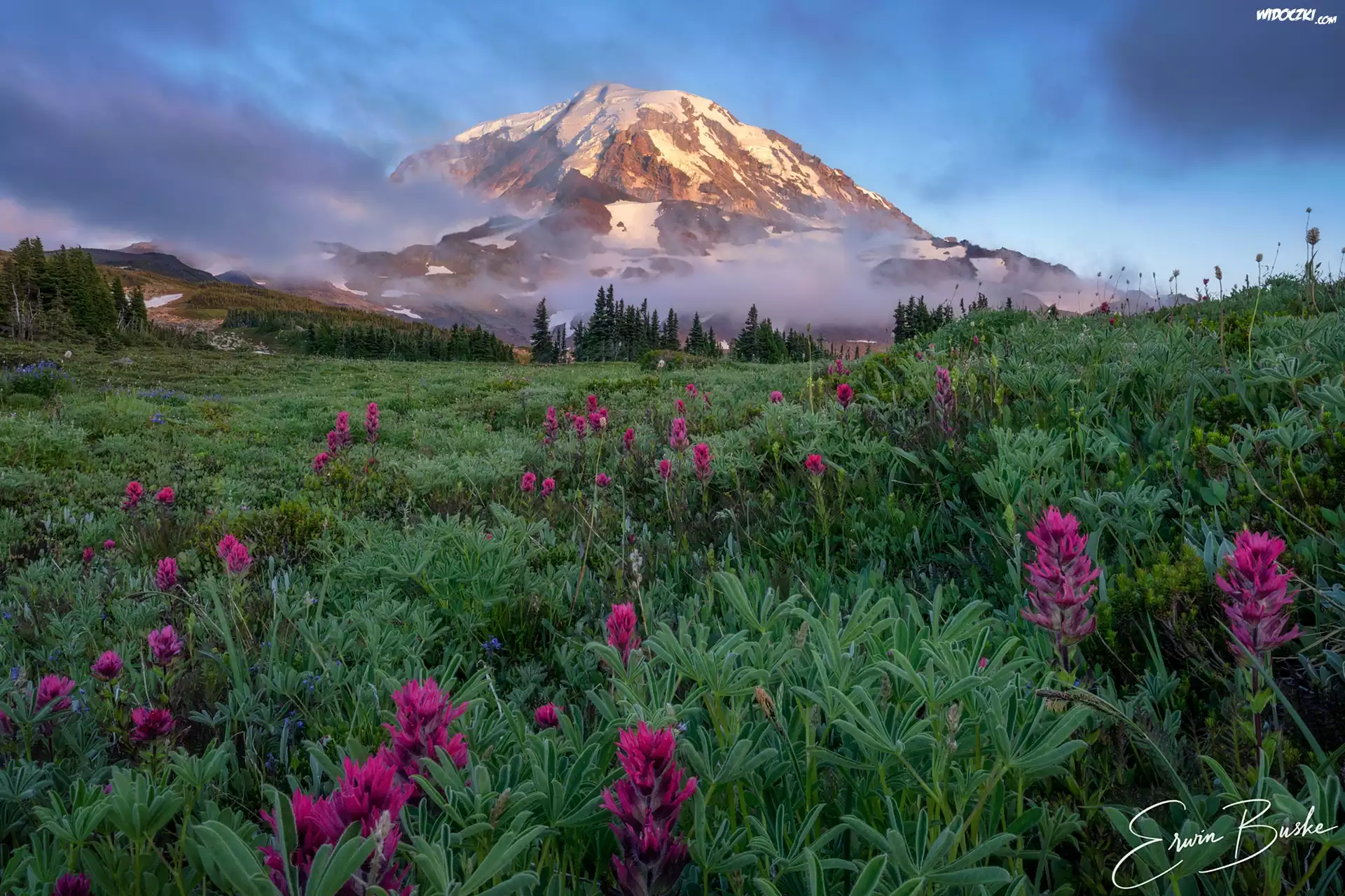 Park Narodowy Mount Rainier, Stratowulkan Mount Rainier, Góry, Łąka, Kwiaty, Stan Waszyngton, Stany Zjednoczone |