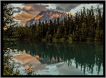 Zdjęcia, Góry, Góra Mount Rundle, Jezioro, Two Jack Lake, Park Narodowy Banff, Drzewa, Odbicie, Alberta, Kanada