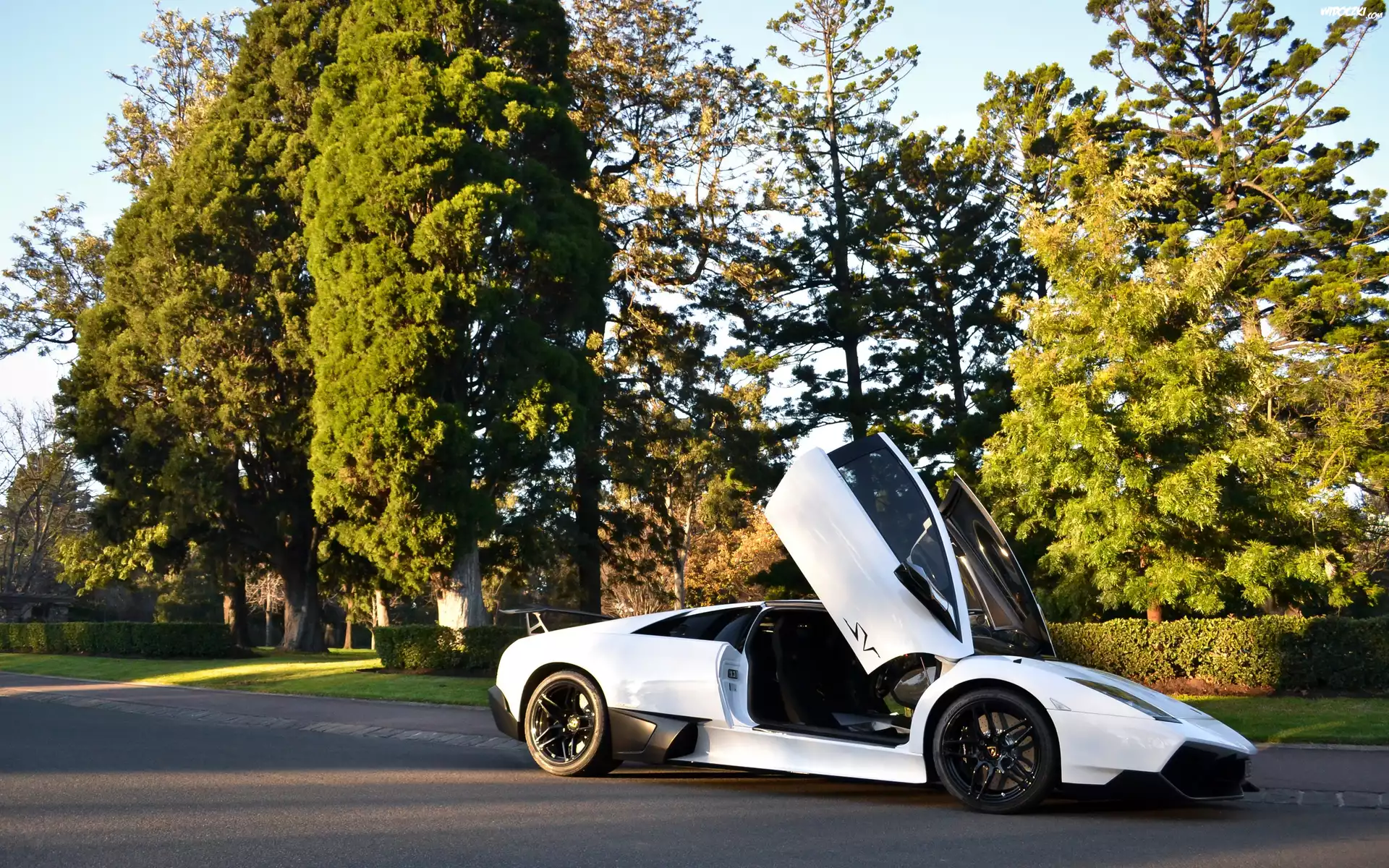 Białe, Lamborgini, Murcielago, LP670-4SV, Ulica, Park