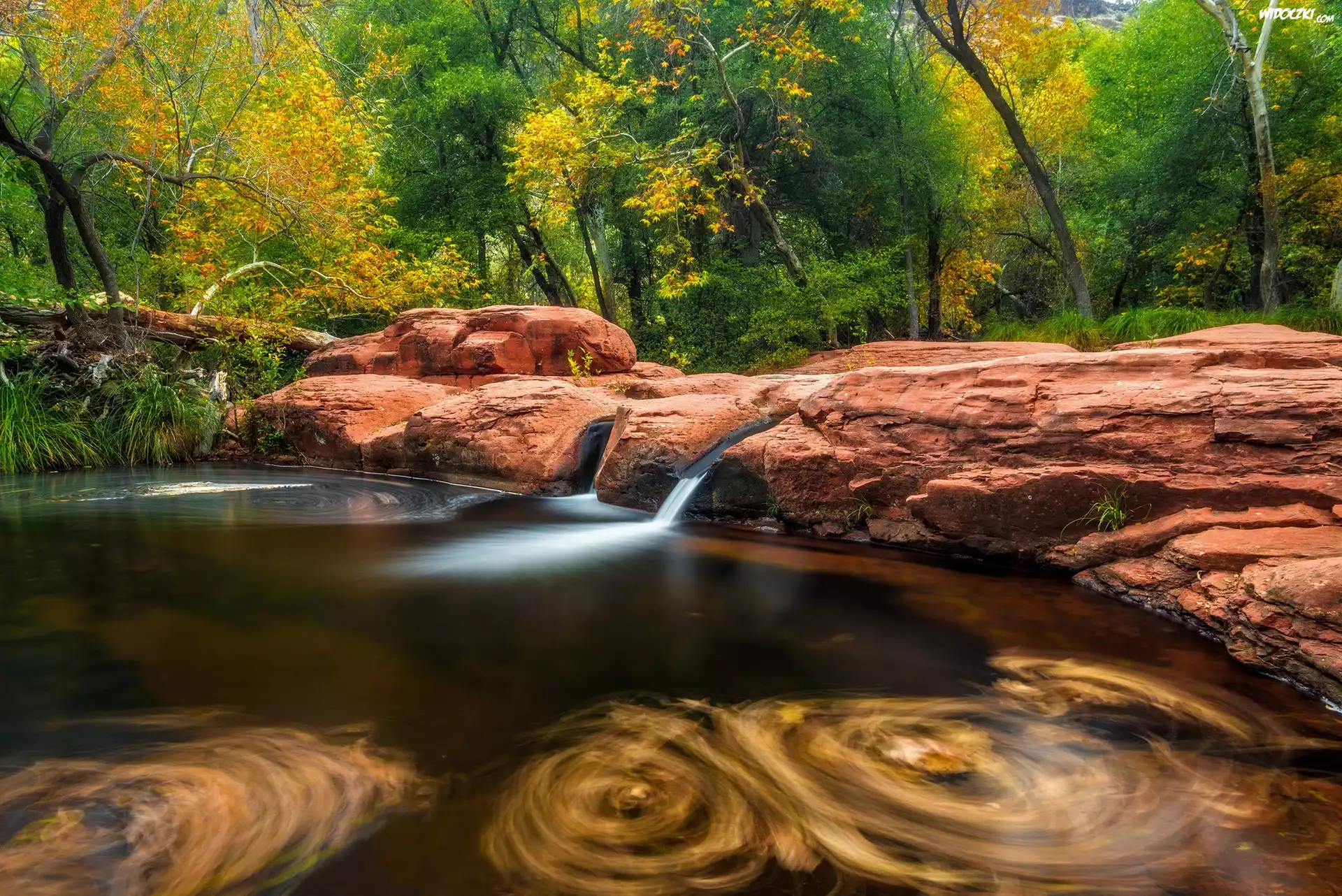 Zdjęcia, Stany Zjednoczone, Arizona, Dolina, Verde Valley, Rzeka, Beaver Creek, Las, Drzewa, Skały