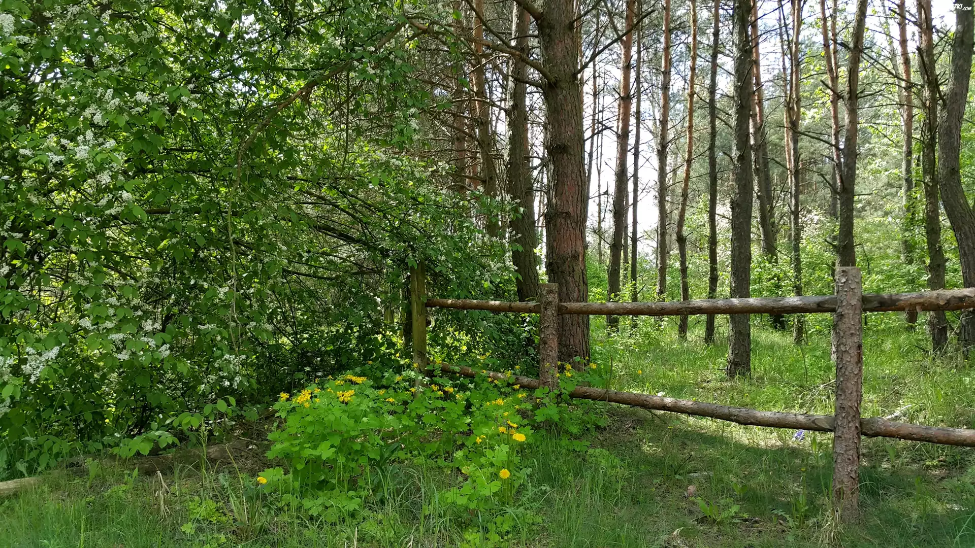 Zdjęcia, Las, Mniszek Pospolity, Czeremcha, Bale, Ogrodzenie