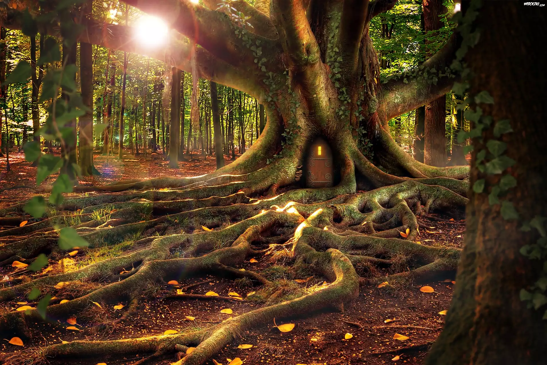 Zdjęcia, Las, Wschód Słońca, Baśniowe Drzewo