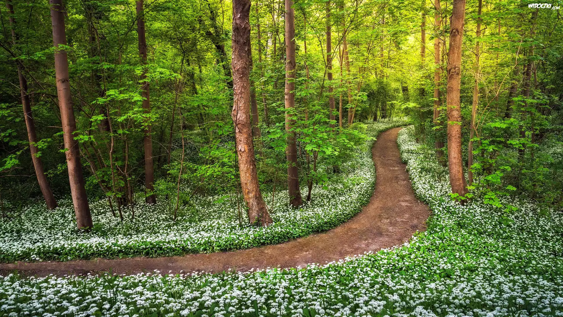 Zdjęcia, Las, Ścieżka, Białe, Kwiatki