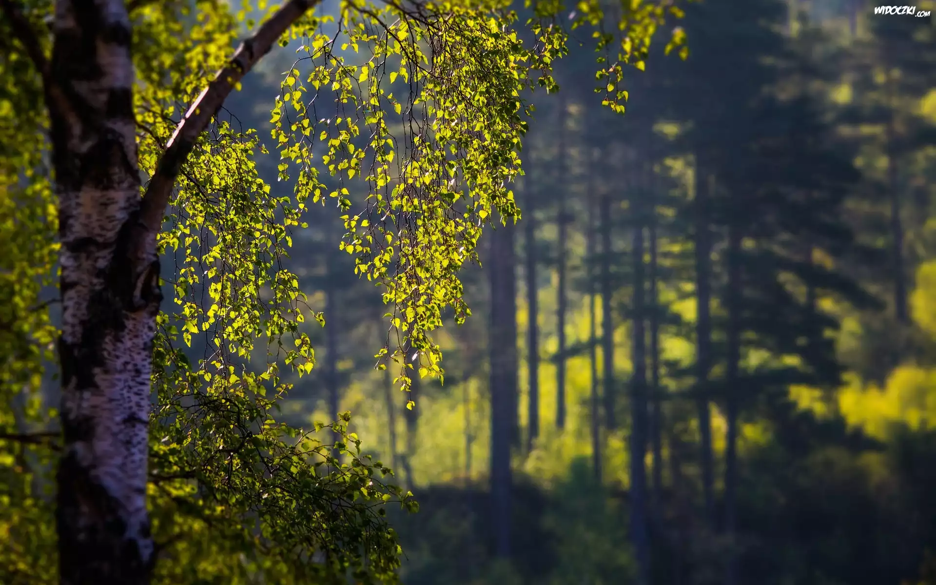 Zdjęcia, Las, Drzewo, Brzoza, Światło