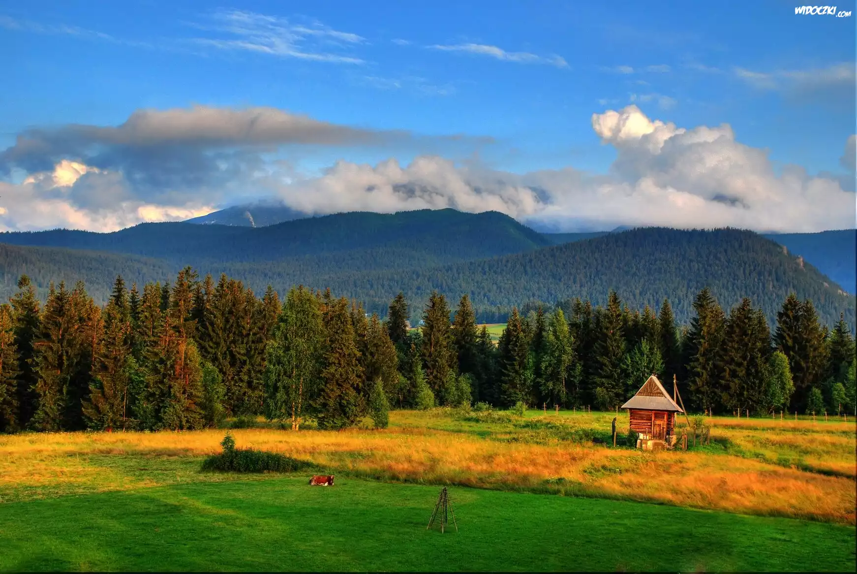 Zdjęcia, Las, Góry, Chmury, Łąka