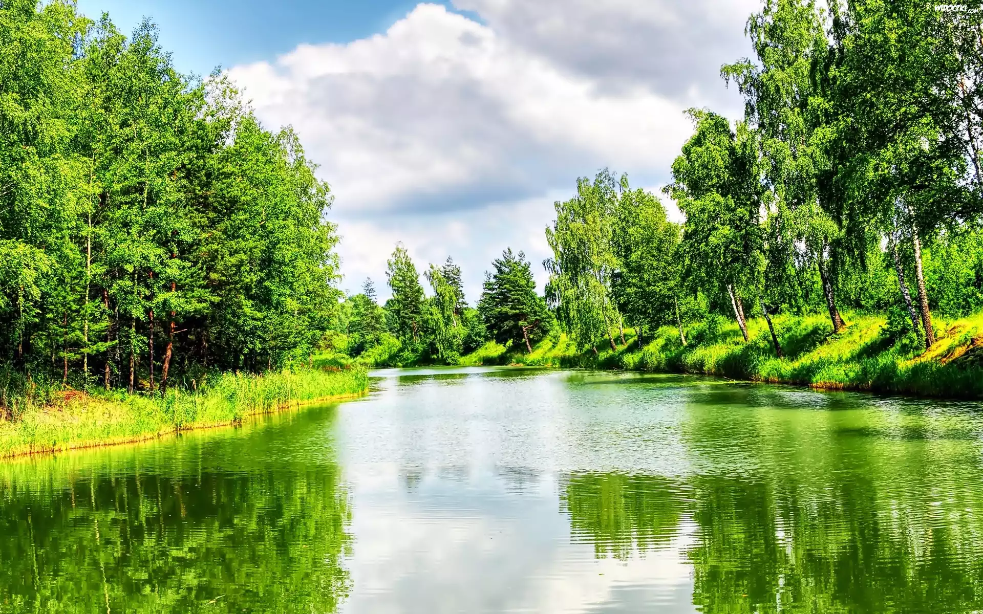 Las, Rzeka, Chmury, Odbicie