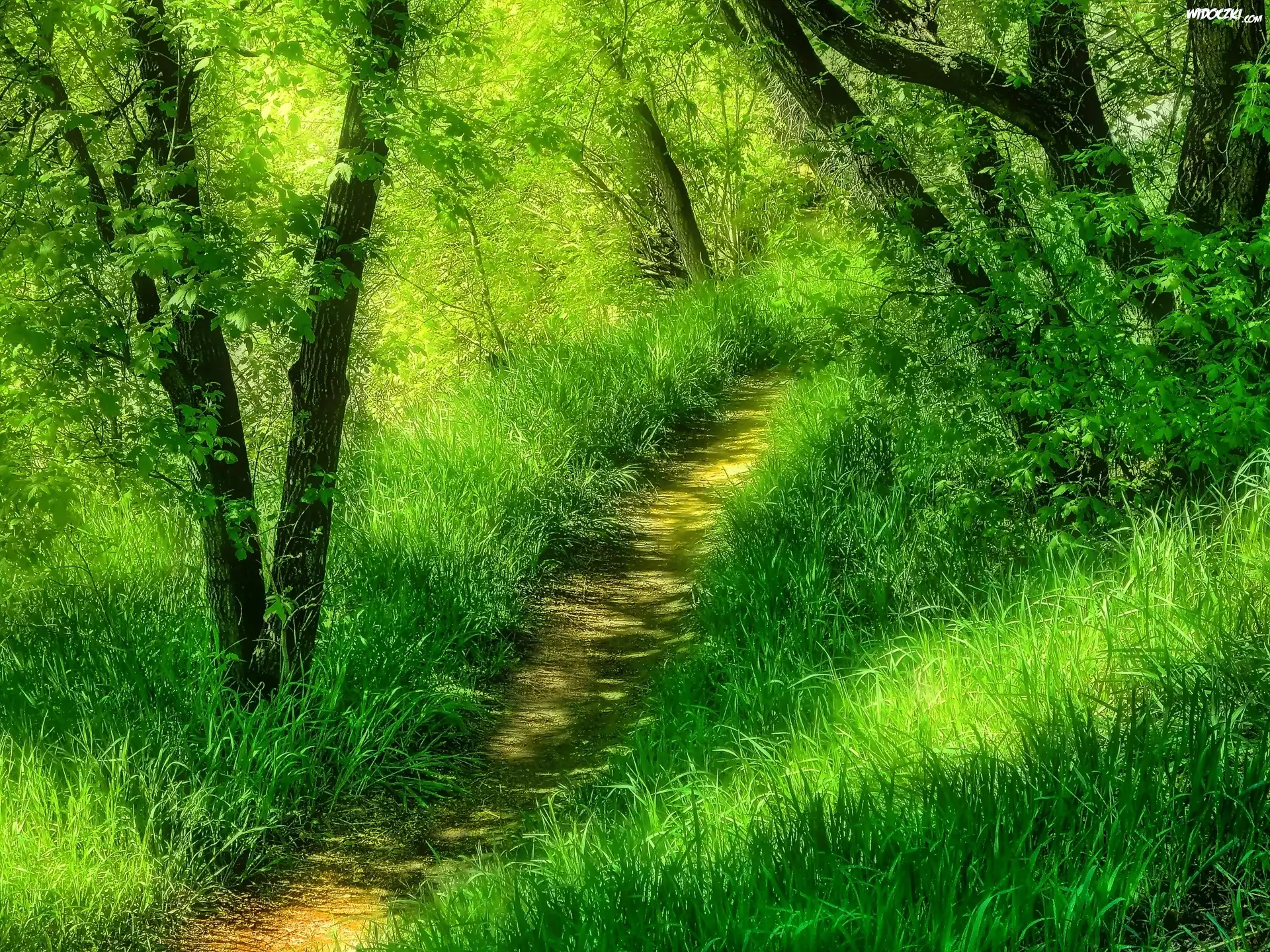 Zdjęcia, Las, Droga, Ścieżka, Trawa