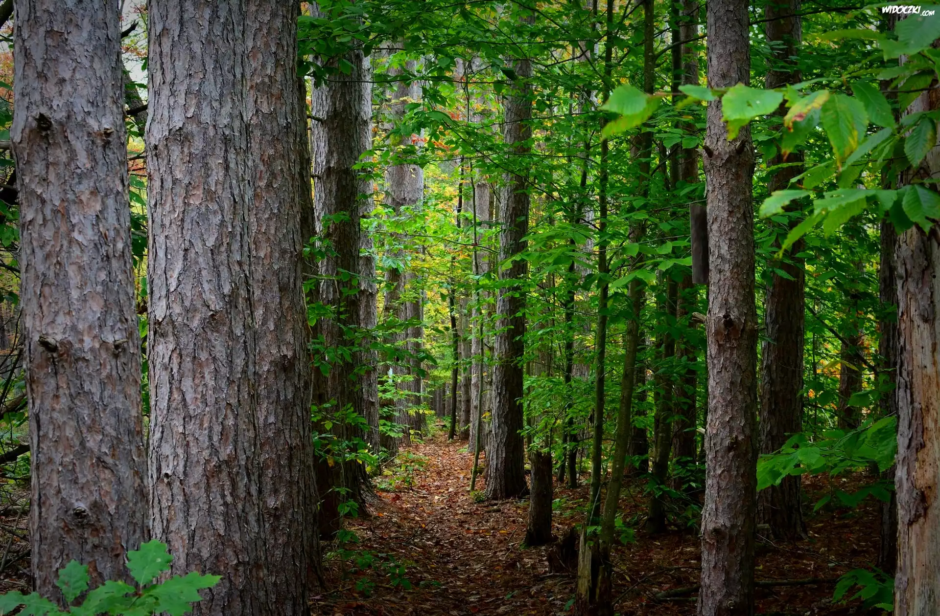 Zdjęcia, Las, Drzewa liściaste, Ścieżka, Liście
