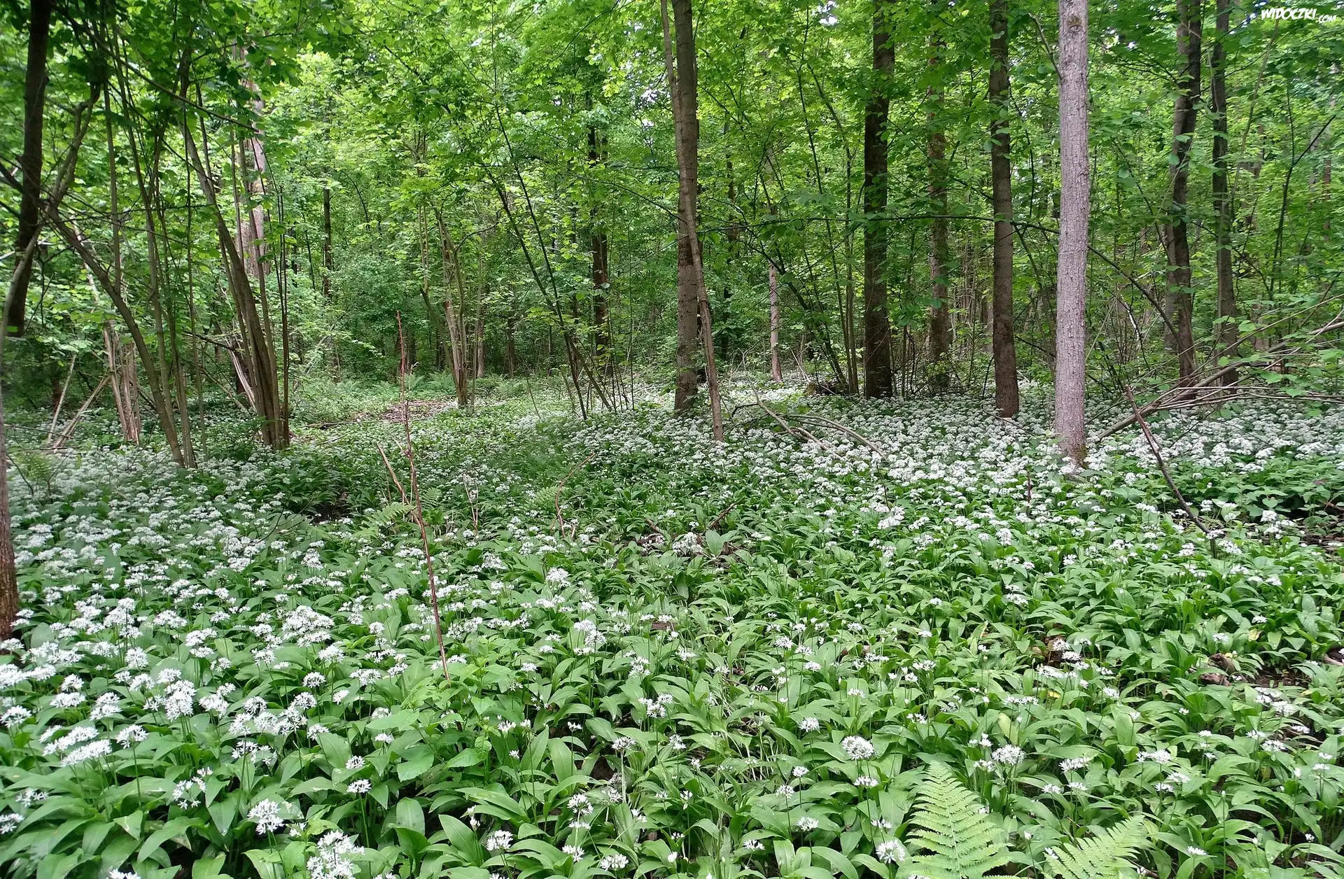 Zdjęcia, Las, Wiosna, Białe, Kwiaty, Czosnek niedźwiedzi
