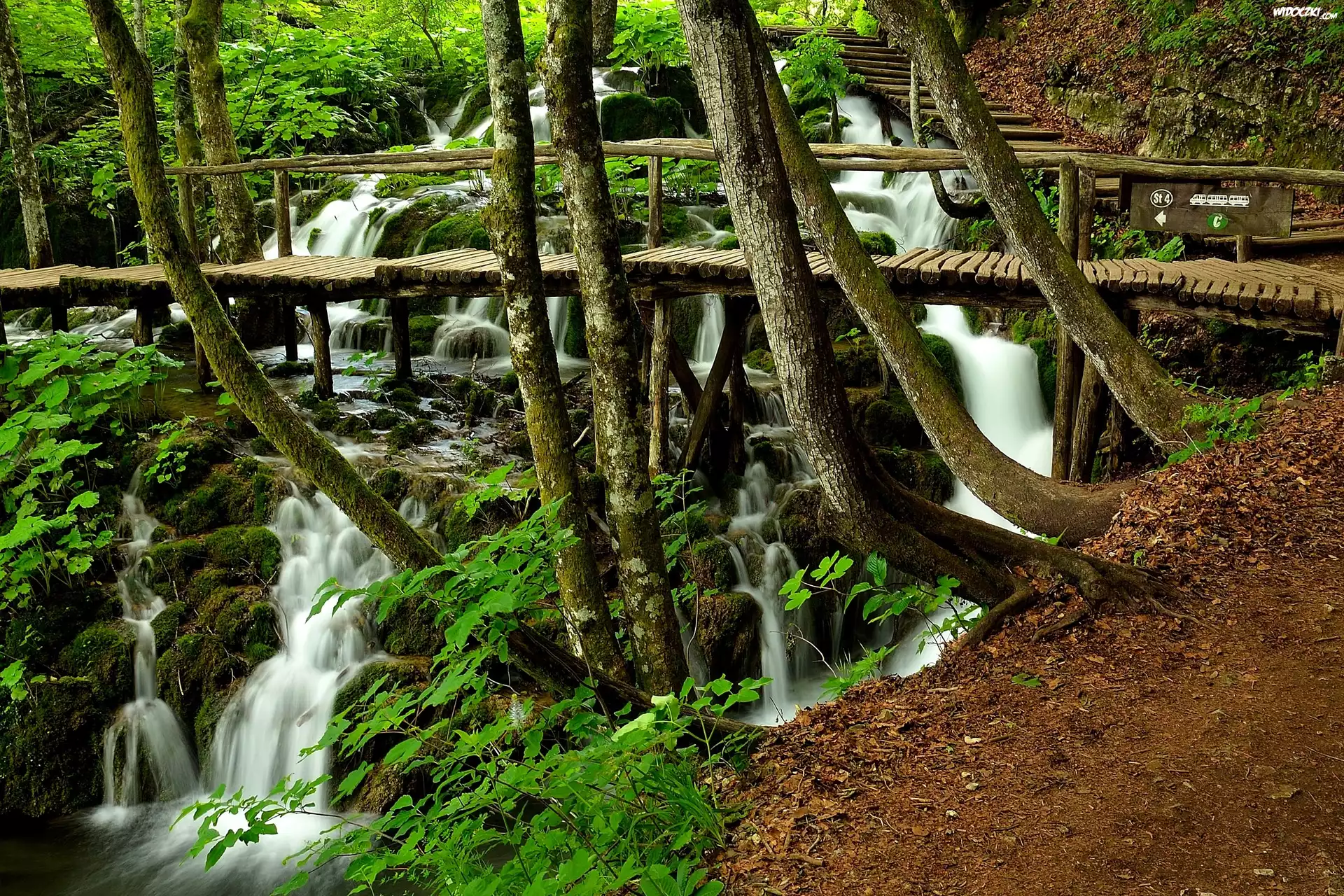 Zdjęcia, Las, Wodospady, Drewniana, Kładka