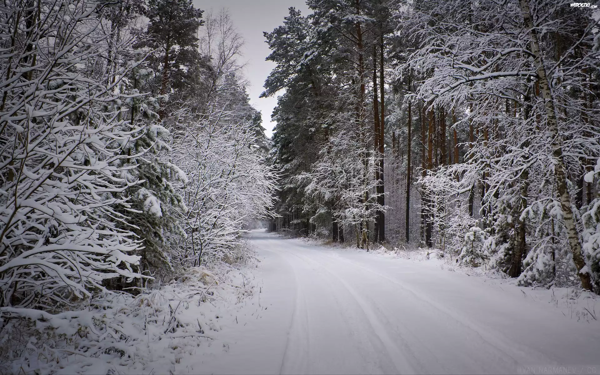 Zdjęcia, Las, Ośnieżone, Drzewa, Zaśnieżona, Droga, Zima