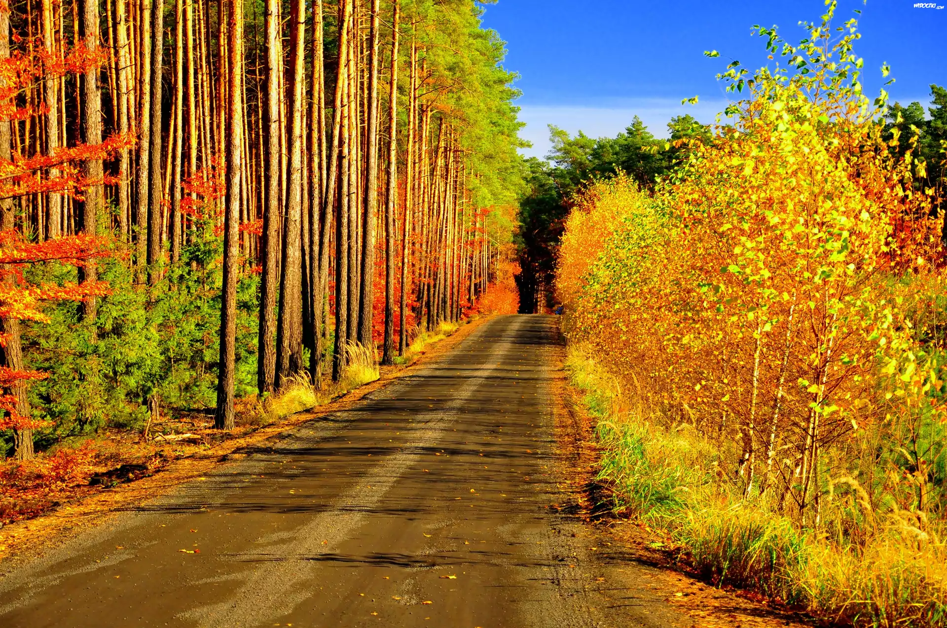 Zdjęcia, Droga, Las, Jesień