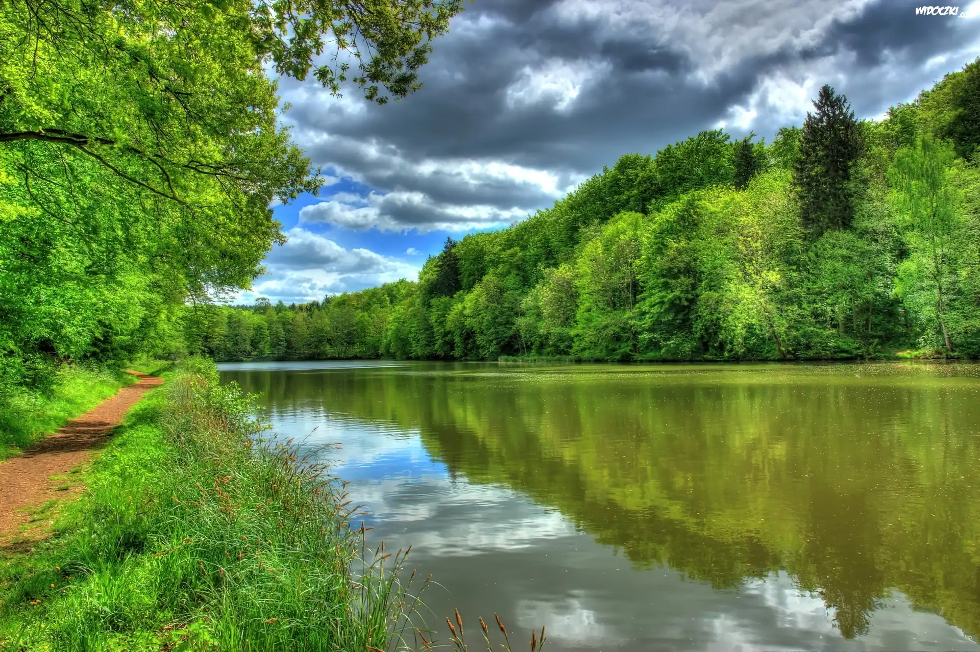 Zdjęcia, Las, Rzeka, Droga, Chmury