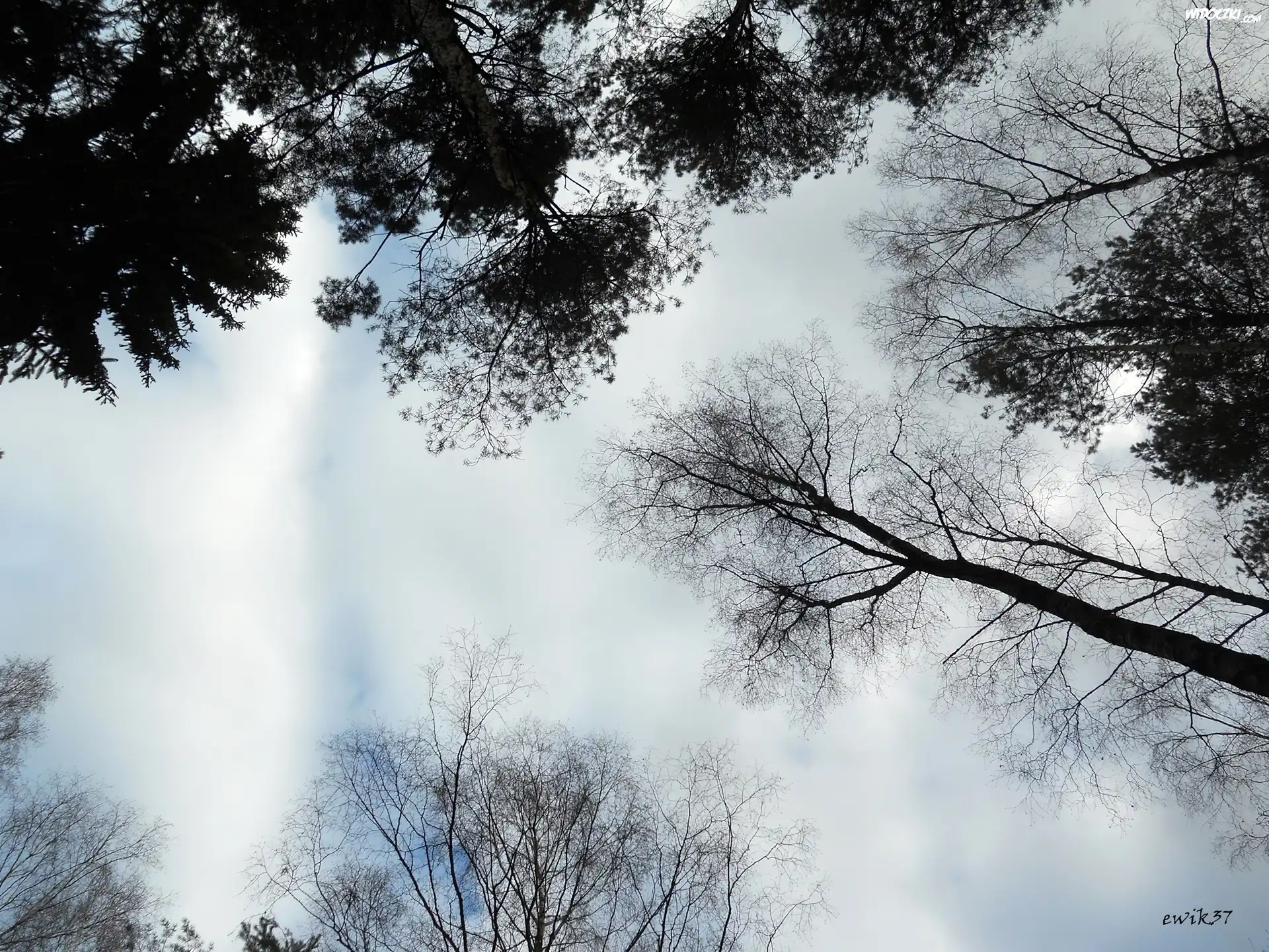 Zdjęcia, Las, Konary, Drzew, Niebo