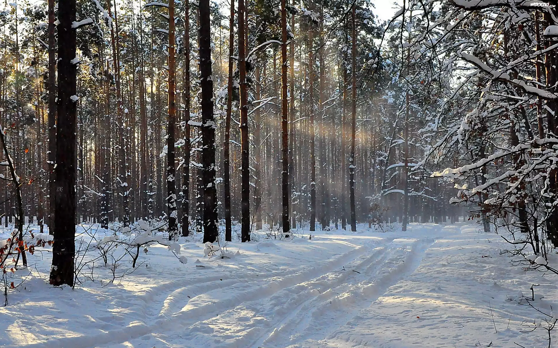 Zdj臋cia, Las, Droga, Drzewa, Zima