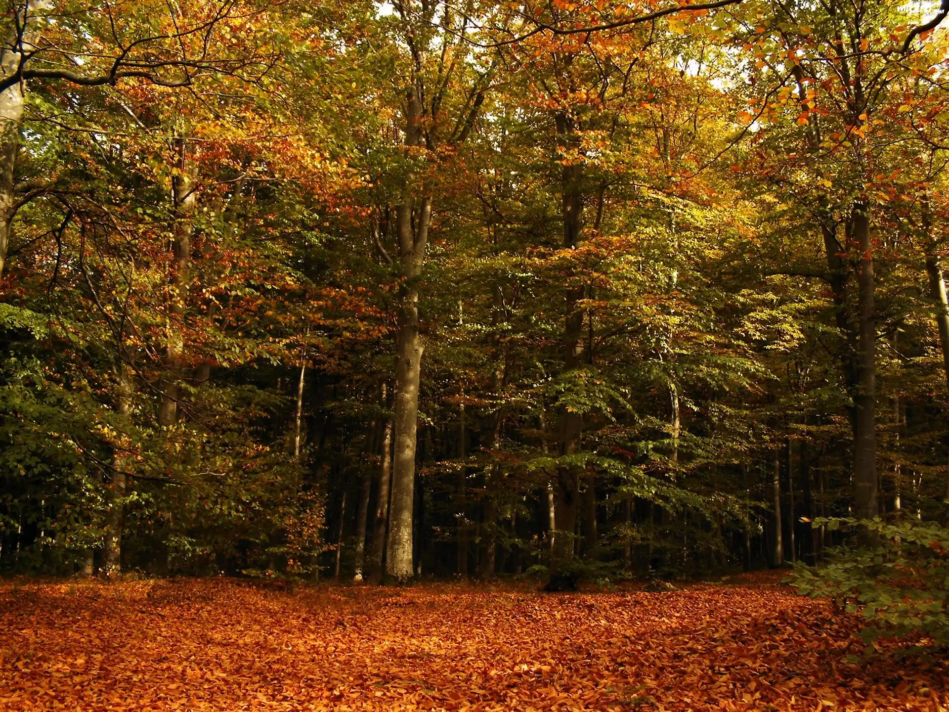 Zdjęcia, Las, Jesienią, Drzewa, Liście