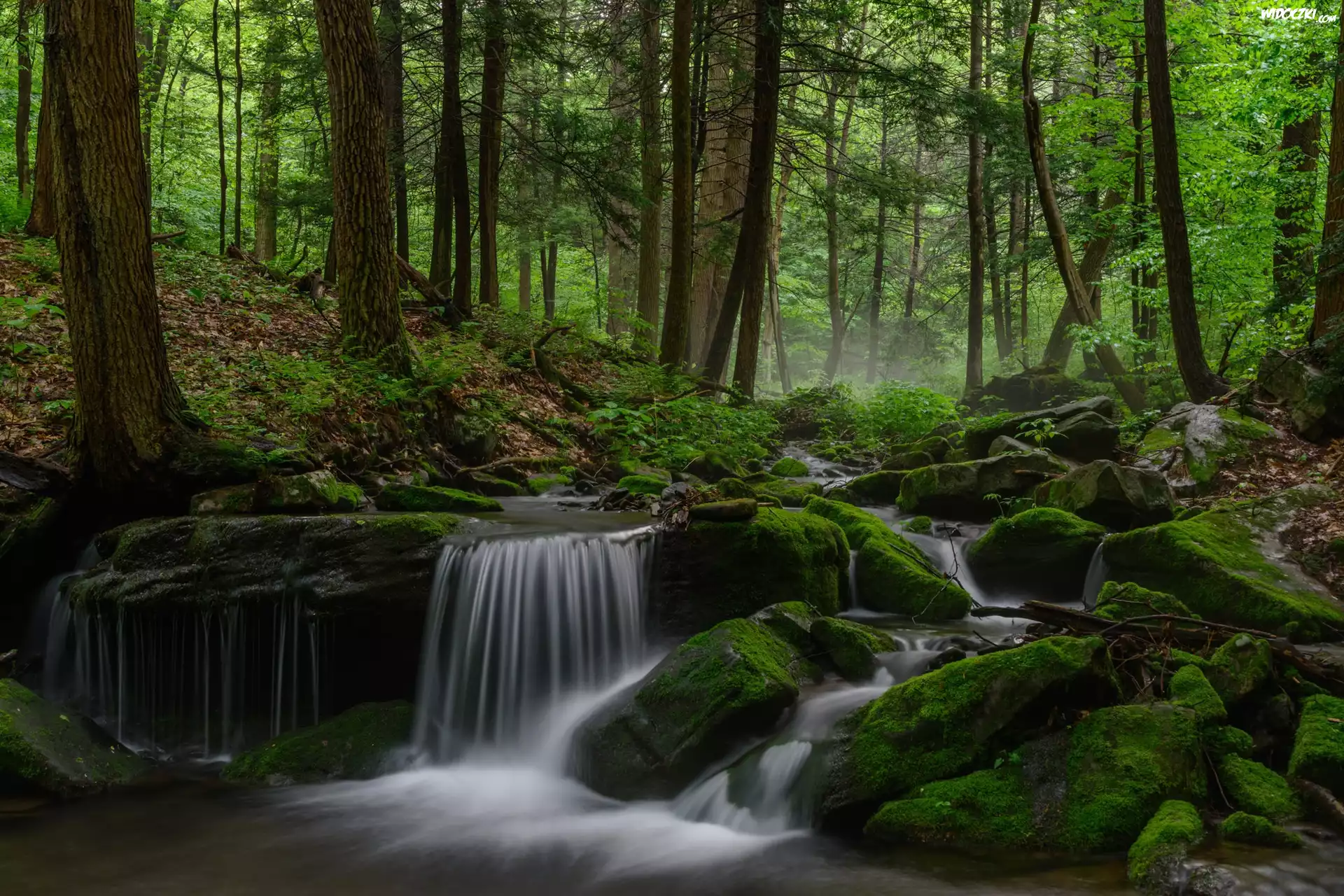 Zdjęcia, Las, Omszałe, Kamienie, Drzewa, Rzeka